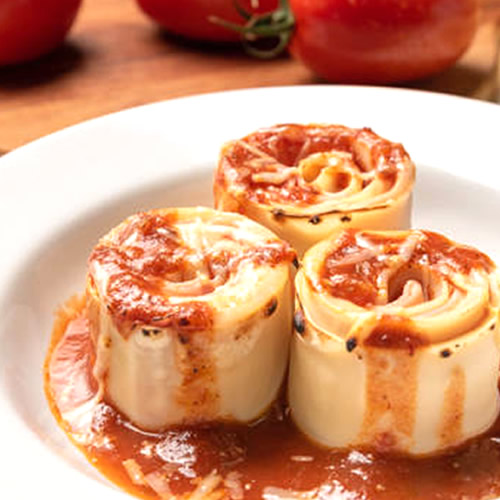 Massa: Rondelli misto (presunto e queijo, molho de tomate)